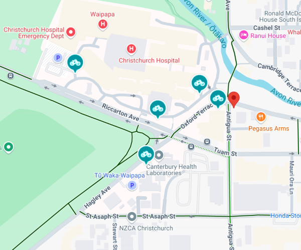 - 5 directly outside the rear entrance of Christchurch Outpatients on Antigua Street